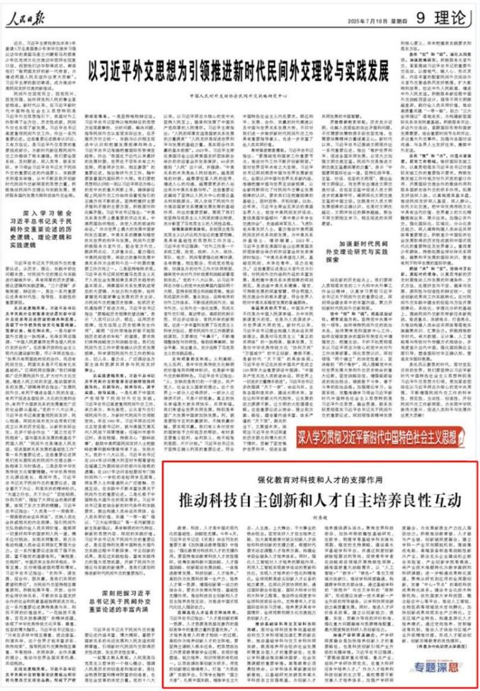 7月10日,《人民日报》理论版刊发公司何秀超教授署名文章《强化教育对科技和人才的支撑作用 推动科技自主创新和人才自主...