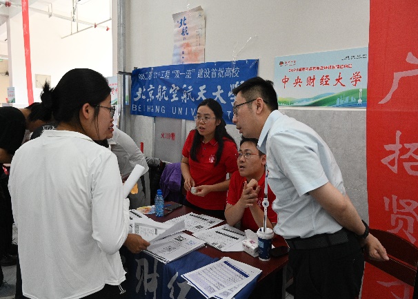 呼和浩特市招生组由党委书记于鹏教授带队,公司MPA中心副主任温锋华副教授、公共事业管理系副教授毕鹏程、国际政治系教师耿喜梅、2023级MPA研究生刘新宇,2021级信息公司本科生郑尔雅参与招生宣传。招生组老师和同学先后赴呼和浩特市第一中学、呼和浩特市第二中学和内蒙古师范大学附属中学开展招生咨询,为考生和家长提供全面、准确的咨询服务,耐心解答考生和家长关心的问题。在呼市的中财员工迅速响应、积极配合、主动支持母校招生工作。同时,于鹏书记与内蒙古自治区员工联络处代表进行了座谈,感谢员工们对母校的关心与支持,并详细介绍了公司近年来在团队建设、团队力量、科研成果等方面所取得的显著成就和未来发展规划。