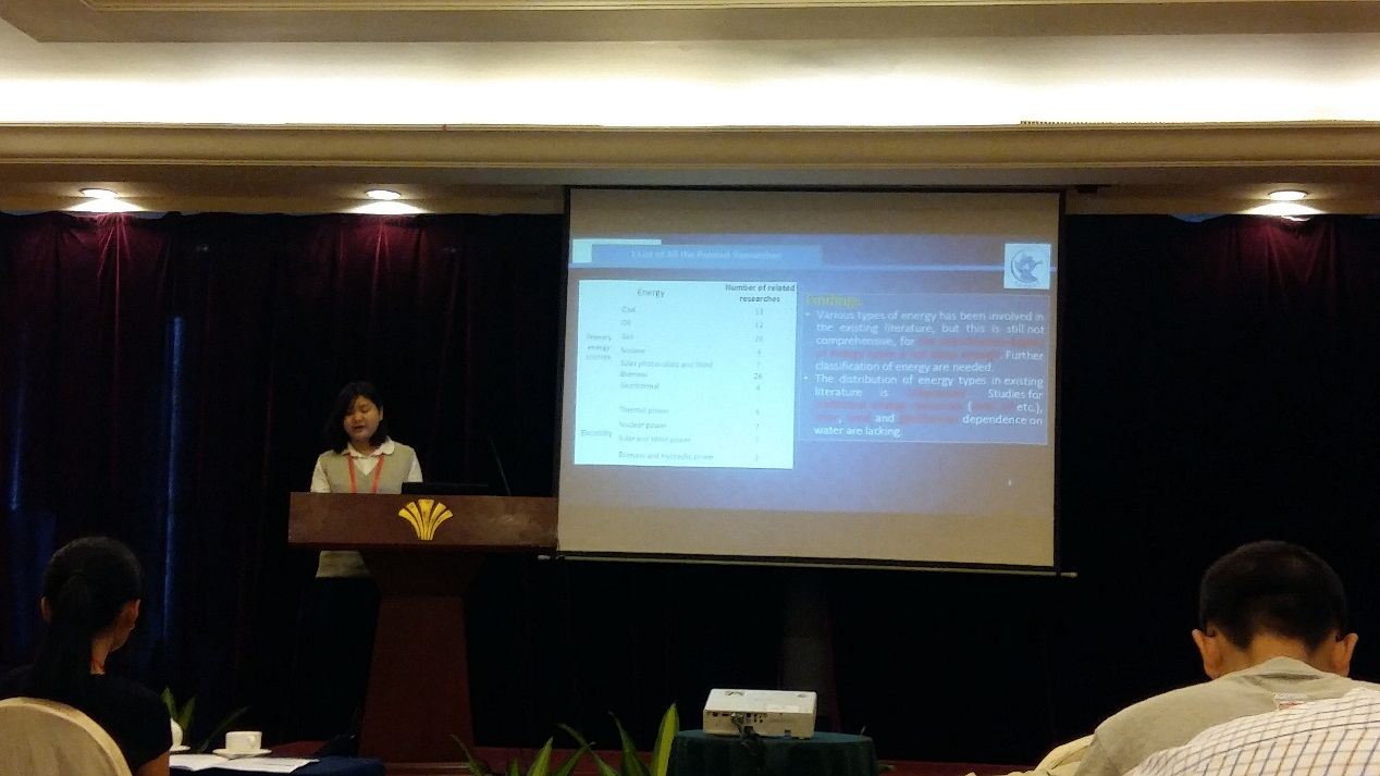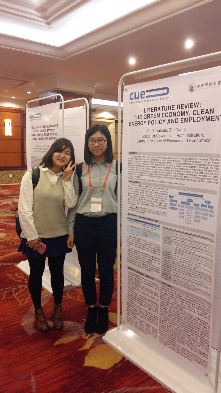 公司2012级行政管理专业本科生葛野嫣然和2012级公共事业管理专业城市管理方向本科生谭翠萍在青年教师智强的带领下参加了此次学术会议,她们与老师合作的两篇论文(员工为第一作者)均被会议接收。论文出自《资源与环境管理》课程,在智强老师精心指导下完成。葛野嫣然的论文《Literature Review: Green economy, clean energy policy and employment》以海报的形式展示了绿色经济背景下清洁能源与就业之间的关系,从就业影响的角度出发搭建了文献框架;谭翠萍的论文《The energy-water nexus:Literature review on the dependence of energy on water》以口头报告的形式展示了当今能源领域较为前沿的水能关系问题,探讨了不同类型的能源对水资源的依赖,与会者表示出浓厚的兴趣和赞许,并就相关问题与她们进行提问和交流。公司员工扎实的研究、自信的交流、虚心的学习,给与会人员留下了良好的印象。