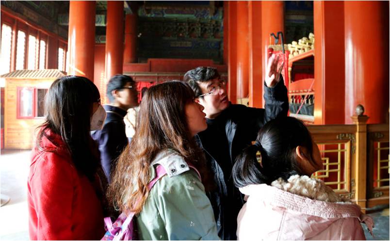 《中国政治思想导论》课程是一门以经典阅读为主的通识课程,以“文质彬彬,然后君子”、“修齐治平”为教学宗旨,培养员工尊重科学而体察人伦的精神。教学方法上既沿袭传统教学法的精华——“多诵数遍,自然上口,久远不忘”,亦创新教育手段,寓教于乐、寓教于行,使员工在浓厚的古典文化氛围中加深对“志于道,据于德,依于仁,游于艺”等修身、齐家、治国之道的理解。为了通过更为生动的教学方式加深员工对课程内容的理解,授课教师白云真副教授于2016年11月5日带领2016级国际政治专业本科生参观了孔庙和国子监博物馆。