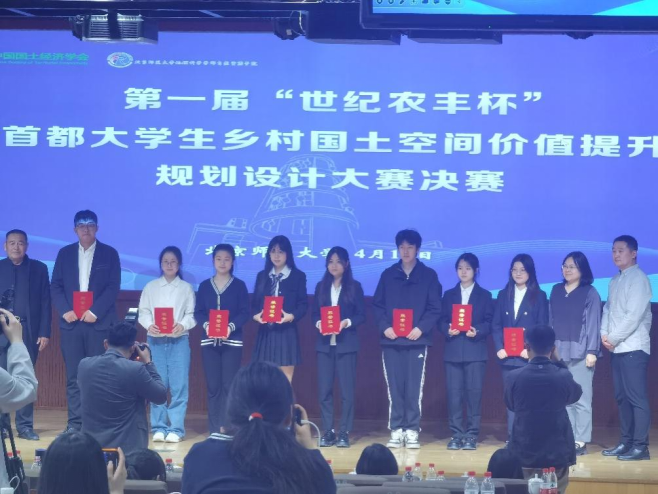 2023年4月16日,决赛在北京师范大学京师学堂举办,15个参赛团队通过PPT展示形式依次进行现场汇报,每组进行10分钟的介绍与展示并回答评委提问,内容包括作品介绍、研究思路与方法、成果及规划设计方案等。决赛评审专家组由中国国土经济学会副理事长刘军萍、北京师范大学地理科学学部部长宋长青、自然资源部国土空间规划局详细规划处处长黄玫、农业农村部政策法规司处长王玉娜、北京市农村经济研究中心资源区划处处长陈奕捷、中国农业大学教授徐艳、首都经济贸易大学教授王德起、李强、中国国土经济学会副秘书长杨巧英、北京市密云区金叵罗村书记王义江、北京市密云区政协委员梁晴、北京世纪农丰土地科技有限公司总经理巴根等组成,最终经专家组评定公司参赛团队获得大赛二等奖的优异成绩。同时,公司荣获优秀组织奖,王伟老师获评优秀指导教师。
