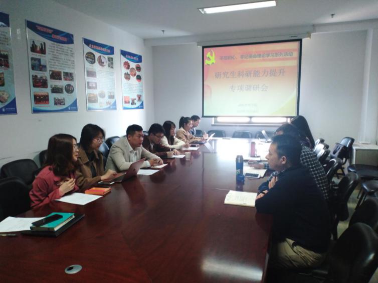 2019年10月18日上午,bv伟德国际1946官网“不忘初心、牢记使命”理论学习系列活动暨研究生科研能力提升专项调研会在932会议室举行。公司副经理于鹏副教授、MPA教育中心副主任宋魏巍副教授、研究生工作办公室主任张鑫媛老师、研究生教务秘书张肖蒙老师,学术型硕士研究生、MPA和博士生代表参加本次会议。会议由于鹏副经理主持。