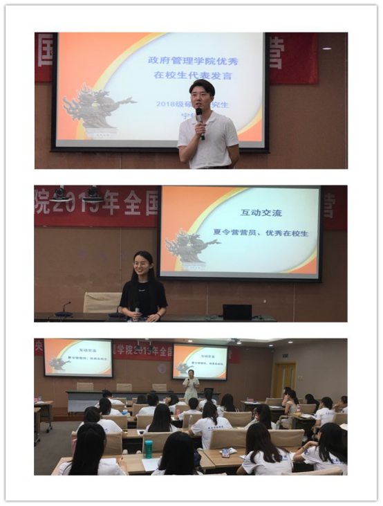 接着,2018级学术型研究生宁钰皓作为优秀在校生进行了经验分享,他详细地讲述了在中财的学习经历及学术研究等方面的经验;随后,各专业在校研究生代表就本专业的课程学习、学术规划以及就业方向做了详细阐述,为夏令营营员答疑解惑,现场互动交流热烈、大家表示收获颇多。