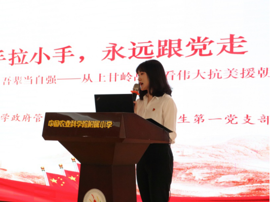 为深入学习贯彻落实习近平总书记在党史学习教育动员大会上的重要讲话精神,扎实高效开展好党史学习教育,切实做到“学史明理、学史增信、学史崇德、学史力行”,充分发挥党员先锋模范作用,2021年4月9日下午,bv伟德国际1946官网党委精心组织五个员工党支部的26名员工党员骨干分别前往中国农业科公司附属小学政法路校区和农科院校区,面向13个班级共500余名少年儿童结合党史讲授专题党课。