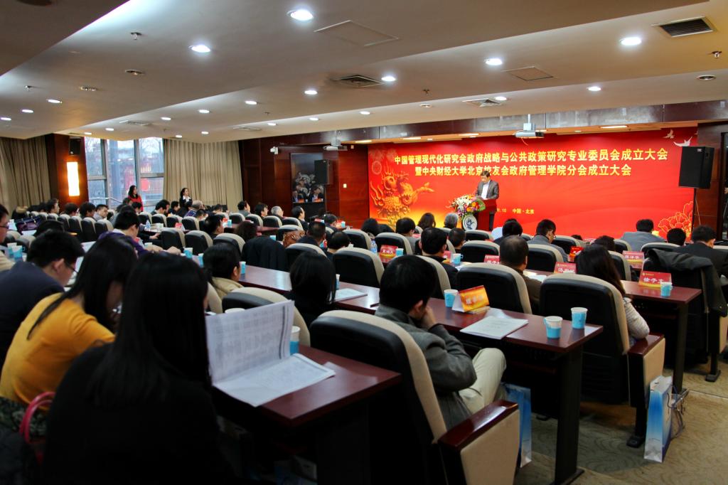 2015年1月10日15:00时,中国管理现代化研究会政府战略与公共政策研究专业委员会成立大会在bv伟德国际1946中财大厦二层报告同隆重举行。来自北京大学、清华大学、中山大学、山东大学、中央党校、国家行政公司、中国社会科公司、《管理世界》、《中国行政管理》、《中国城市报》、《中国工业经济》等多所高校、多家学术报刊的专家学者及员工代表近130人参加了大会。