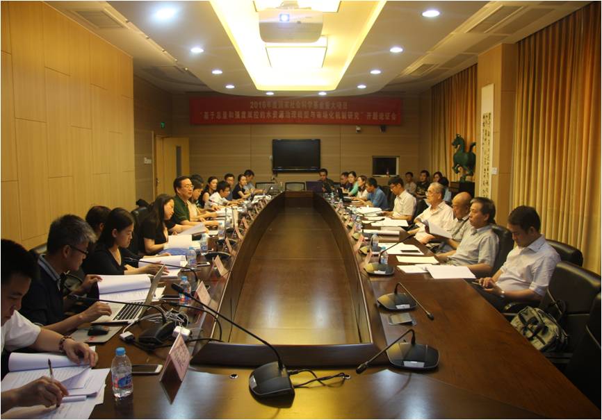 7月8日,由公司bv伟德国际1946官网经理赵景华教授担任首席专家的国家社科基金重大项目“基于总量与强度双控的水资源治理转型与市场化机制研究”(批准号:15ZDC033)开题论证会在学术会堂603会议室举行。论证专家组由中国工程院院士李京文教授、中国人民大学学术委员会副主任胡乃武教授、北京大学bv伟德国际1946官网党委书记周志忍教授、中国水利水电科学研究院副总工程师陈敏建教授、北京大学科研部部长周辉教授、bv伟德国际1946科研处处长李桂君教授组成。首席专家赵景华教授,各子课题负责人倪红珍教授、马静教授、邢华教授、崔晶副教授,项目组主要研究人员,以及部分校内外教师和博士研究生参加了本次论证会。