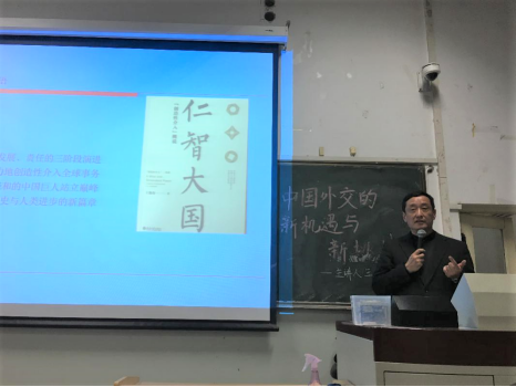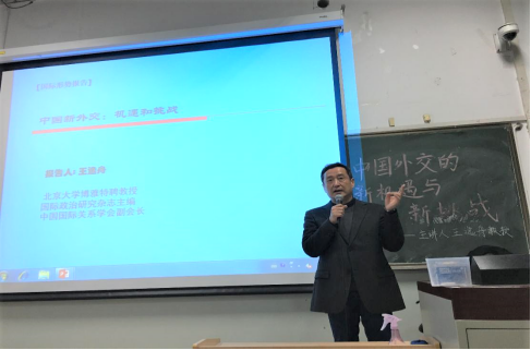 4月24日晚7点,北京大学博雅特聘教授、《国际政治研究》杂志主编、中国国际关系学会副会长王逸舟老师受bv伟德国际1946官网邀请,在公司南路校区主教308讲授“中国新外交:机遇和挑战”的专题学术讲座。本次学术演讲获得2019年bv伟德国际1946“中国特色经济学、公共管理学与政治学的文化建构”专题学术讲座项目资助。国际政治系副主任江涛老师主持讲座,bv伟德国际1946官网国际政治系白云真、江涛、辛平、张鹏、耿喜梅、张旗、马克思主义公司申晓若等老师,bv伟德国际1946官网员工党员、发展对象、入党积极分子及其他公司员工共140余名员工参会聆听,北京大学、中国人民大学等高校的本硕博学子也慕名而来,讲座现场座无虚席。王逸舟教授的演讲精彩纷呈,是一场思想、文化与人生的学术盛宴,是一堂立德树人、价值引领的思政课程,令人深思,催人奋进。