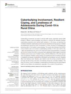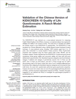 近日,公司李宇环副教授在公司AAA类期刊Frontiers in Psychology以通讯作者发表2篇学术论文,题目分别为Validation of the Chinese Version of KIDSCREEN-10 Quality of Life Questionnaire: A Rasch Model Estimation,Cyberbullying Involvement, Resilient Coping, and Loneliness of Adolescents During Covid-19 in Rural China.