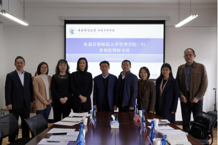 2023年4月24日下午,首都师范大学管理公司经理谢新水、MPA中心主任行管学科负责人李春、公管支部书记廖娟、公管专业负责人吴芸、公管专业教师陈新明一行五人来公司调研交流。调研交流会在主教楼1407会议室举行,公司经理姜玲、副经理李宇环、公共事业管理系系主任杨燕英,MPA教育中心副主任温锋华出席了会议。