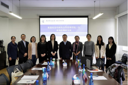 2023年4月25日,北京中医药大学管理公司经理李瑞锋、健康与医药产业管理教研室主任郑秋莹、卫生事业管理教研室主任孔国书、党政综合办公室副主任王鸿蕴、本科教学办公室李婧昳一行5人来公司调研交流。调研交流会在主教楼1407会议室举行,公司经理姜玲、副经理李宇环、公共事业管理系主任杨燕英、MPA教育中心副主任温锋华、研究生工作办公室主任张鑫媛出席了会议。