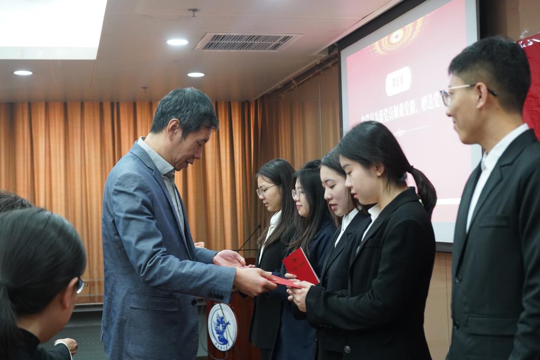 公司党委书记于鹏,党委副书记、纪委书记杨柳、党委组织员张小燕和各党支部书记等为24名新党员佩戴党徽,赠送《中国共产党章程》,并合影留念。