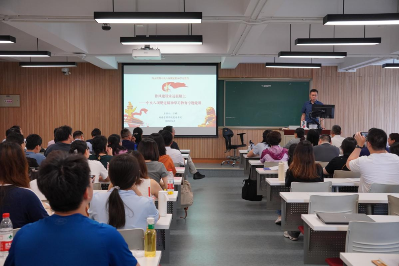 为深入贯彻习近平总书记关于加强党的作风建设的重要论述,进一步落实中央八项规定精神,引导全体党员干部进一步严明纪律规矩,加强党员干部作风建设,6月30日,bv伟德国际1946官网党委书记于鹏围绕“作风建设永远在路上——深入学习贯彻中央八项规定精神”这一主题,在主教403教室为公司全体师生党员带来了一场深刻而生动的专题党课。