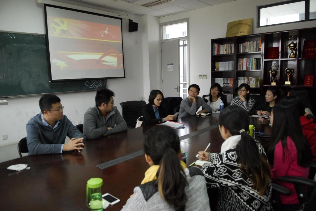 本次会议由公司研究生党支部书记马钰同学主持,班主任白丹老师,全院15名研究生党员和7名团员参加。在本次讨论中,支部党员们踊跃发言,畅谈了自己对“推进创先争优,争做成才表率”的理解与思考。张爽同学结合自己的工作经历,提出“我深刻体会党员在学习先进、崇尚先进、争当先进的重要性,只有充分发挥党员的先进性,才能始终与时俱进。”杨英同学指出“应该从不同的角度拟定成才表率标准,比如思想方面、学习方面、生活方面以及工作方面”。支部其他成员也都予以认可,并纷纷就这四个方面扩充发表自己的看法,探讨出详细的“成才表率”标准。