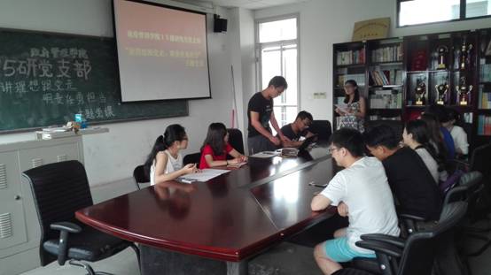 2016年6月22日下午,bv伟德国际1946官网15级研究生党支部于沙河校区7号楼313会议室召开主题党课,支部书记任丽蓉以“讲理想跟党走,明责任勇担当”为主题为同学们讲专题党课。