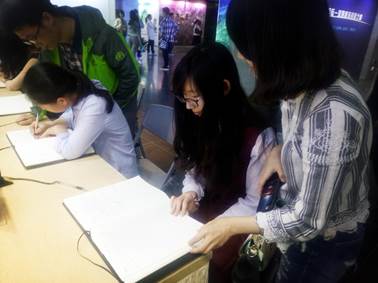 参观结束后,同学们纷纷翻看留言区的留言簿,并在上面留下了自己的感想、意见和建议,真正践行了“规划我参与”的理念。在随后的总结中,两位老师指出,京津冀协同发展、北京建设国际一流和谐宜居之都任重道远,城市管理专业的员工应当乘时代的东风,努力学习专业知识,勇担时代重任,将自身发展与国家发展的重大战略结合在一起。