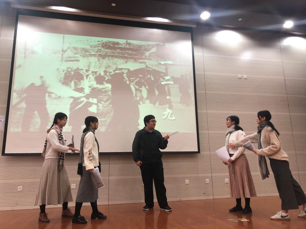 开场视频简明地介绍了小组学习历程。随着汇报的展开,小组成员提出新时代青年员工的身份构建,展现了对“一二·九”运动的学习思考。灵动的情景剧将我们带回那段血与火的岁月、真切感受到了青年员工应有的担当与使命;声情并茂的诗歌朗诵再现了青年员工奋起反抗、为国奉献的爱国豪情。