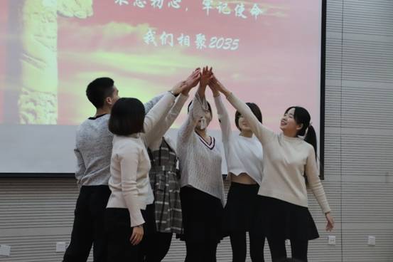 “永远跟党走”小组首先带来关于使命与初心意义的阐述。接着,小组成员用歌曲、朗诵、舞蹈等形式传达对“2035”的美好期待。“重温历史,我们对祖国苦难的过去,刻骨铭心;展望明天,我们对祖国光明的未来,充满信心。”不忘初心圆梦想,牢记使命创辉煌,中国梦不再是梦,“2035”近在眼前。