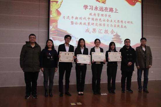 小组展示结束后,柴铎老师和白云真老师先后对各习研小组做出点评和总结。柴铎老师谈到,在改革开放四十周年之际,公共管理学科赢来了盛世。这次活动的初衷是让同学们切实感受到新时代大背景下的改革趋势,使同学们深刻领会到改革对于实现中华民族伟大复兴的重要意义。他希望同学们能够坚定自己的理想信念,通过本次活动,增进对本专业的价值认知,更好的投身于祖国的发展建设。随后白云真老师从文化力、道德力、理解力、行动力、共生力等“五力”做出总结。白老师勉励同学们不断深入学习贯彻落实党的十九大精神,学习习近平总书记系列重要讲话,将理论与实践相结合,知行合一,做一名新时代的青年。他期望同学们在本次活动中能够提高自己的政治素养和学术素养,希望大家结合自身新时代老员工的特点增强对习近平新时代中国特色社会主义思想的理解,也希望每一位同学能有更多的学习和实践成果,在今后的研究性学习中,一步一个脚印,结出丰硕成果,谱写新篇章,铸就新辉煌。