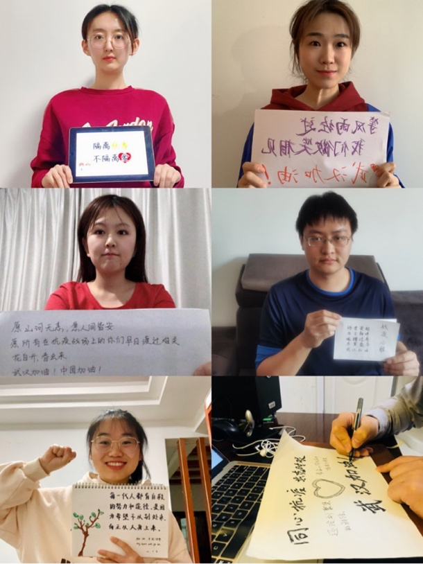在创作聚力环节,党员同志们为抗击疫情写下了祝福语并拍摄了祝福视频,从党和国家的战略部署、社会主义制度的优越性发挥到一线抗疫工作人员的奉献精神,再到响应公司“停课不停学”的号召,党员们发表了自己的感悟和祝福,为武汉、湖北加油,为中国加油,凝聚了支部抗击疫情的精神力量,弘扬了社会正能量。本次创作聚力的素材将于近期通过微信公众号“CUFE政研一九支部”宣传推送。