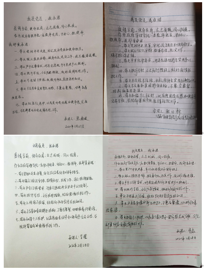 2月28日上午10:00,bv伟德国际1946官网行政人员教工党支部里利用微信平台举行“同心抗疫,共克时艰”线上主题党日活动。支部党员们在微信群中就近期学习实践情况进行交流,并集中学习了《习近平总书记在北京调研指导新冠肺炎疫情防控工作重要讲话精神》以及《习近平在统筹推进新冠肺炎疫情防控和经济社会发展工作部署会议上的讲话》,集中讨论了公司疫情防控工作的有关规定和要求。在“同心抗疫,从我做起”环节,支部成员以图片、视频、音频等多种方式上传“党员承诺书”,承诺要坚定抗疫信心,坚守自身岗位,发挥共产党员的带头作用,以实际行动为抗击疫情做贡献!
