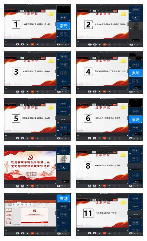 会议上,共有10位党支部书记进行线上述职汇报,1位党支部书记进行书面述职。各位党支部书记围绕学习贯彻落实习近平新时代中国特色社会主义思想、党的十九大精神和十九届四中全会精神、切实开展“不忘初心、牢记使命”主题教育、推进“两学一做”学习教育常态化制度化、贯彻全国教育工作会议和各级思想政治工作会议精神、抓党建促进支部建设等方面,重点介绍了自己在2019年的履职情况,展示了支部党建工作开展的特色做法和亮点,同时对支部党建工作存在的工作难点和问题进行了阐述,提出了进一步加强基层党组织建设的思路和措施。与会人员普遍反映,深入学习贯彻党的十九大精神系列活动和“不忘初心、牢记使命”主题教育切实增强了公司师生党员的“四个意识”,坚定“四个自信”,做到“两个维护”,锻炼并提升了各党支部书记的能力水平,但同时与会人员也反映理论学习有待于深入,党建工作创新性有待于提高,支部建设与“双一流”建设结合有待于加强等切实存在的问题。