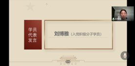 会议进入第二环节:党校结业仪式。入党积极分子代表刘博雅、发展对象学员代表李鸿斌分别发言,回顾党校学习生活,分享学习感悟。学员刘博雅表示,在党校除了学习了理论知识外,自身思想也无形中受到教化。在党校的经历告诉她,唯一正确的入党动机就是为人民服务。作为入党积极分子,青年应先从思想上入党,再从行动上入党。学员李鸿斌表示,2020年,危难与奇迹并行,党的抗疫作为使他明白,越是危难时刻,越是需要坚持。通过党校的学习,他深刻地认识到,坚守党员标准关系到党性、党的战斗力、党与人民群众的关系,所有想向党靠近的青年都需要严格坚守党员标准。他也同大家分享了自己的入党动机,激励自己坚持服务人民、奉献自我的初心。