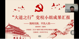 九万里风鹏正举,九十九风华正茂。7月1日,在中国共产党九十九岁华诞这个特殊的日子里,bv伟德国际1946官网2019-2020学年第二学期党校成果汇报会暨结业仪式在腾讯视频会议平台隆重举行。bv伟德国际1946官网党委书记、党校董事长吕丽研究员,党委组织员南琪老师,公司党委委员李海明老师,院员工工作办公室、党校办公室主任张小林老师,本科生党支部书记、院团委书记李莎莉老师,院团委副书记、2018级辅导员刘家琦老师,2017级、2019级辅导员李磊老师出席担任评委。参与人员有bv伟德国际1946官网2019-2020学年第二学期党校全体学员,同时,公司李宇环老师应邀参与本次会议。