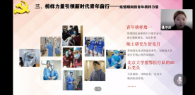 习主席在五四青年节寄语广大青年:“青春由磨砺而出彩,人生因奋斗而升华。”“青春政当前”小组学员通过理论学习与实践学习,认真了解了青年习近平七年梁家河知青岁月,学习了梁家河精神的内涵,并总结出了榜样精神的内涵,即信仰的力量、为民的力量、奋斗的力量、改革的力量、创新的力量。同时,学员们广泛学习了董家耕同志、李向群同志、黄文秀同志、黄大年同志四位不同时代的榜样们的先进事迹,挖掘抗疫期间的青年榜样事迹。汲取众多榜样的力量,学员们最后提出了对青年人的使命的认识,概括为密切群众关系,奉献自我,弘扬进取精神,开拓创新等。