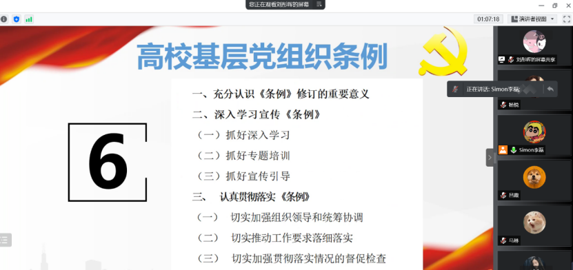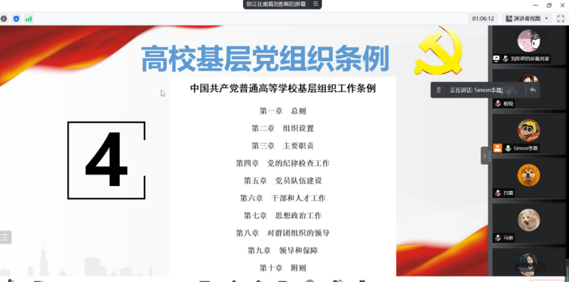 李磊表示,《条例》的修订和实施,对于全面贯彻党的教育方针,落实立德树人根本任务,建设高质量教育体系、建设教育强国,具有重要意义。支部会把学习贯彻《条例》纳入党史学习教育的重要内容,结合支部主题党日等工作,通过个人自学、集中学习、交流分享等多种形式,使支部党员充分认识《条例》的重要意义,深刻领会《条例》的精神实质,全面掌握《条例》的基本内容。