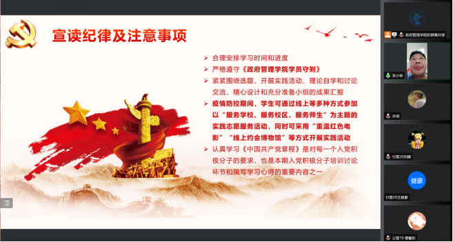 2022年5月13日,bv伟德国际1946官网2022学年第一期入党积极分子培训班开班仪式暨党课第一讲于腾讯会议线上举行,公司党委副书记、党校副董事长李宇环副教授,公司党委组织员南琪老师,公司员工工作办公室主任、党校办公室主任张小林老师,以及来自教师、本、硕、博四个群体的45名入党积极分子参加了本次开班仪式。开班仪式由武思豪同志主持。