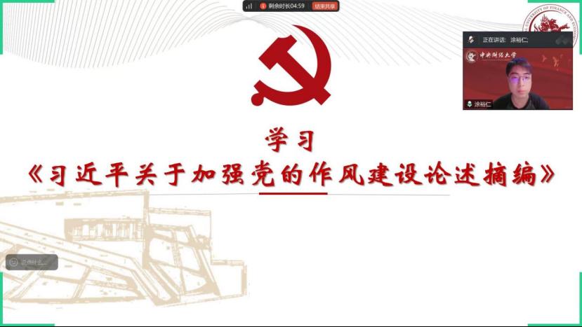 为扎实开展深入贯彻中央八项规定精神学习教育,严格落实“第一议题”学习制度,2025年4月21日,bv伟德国际1946官网学术型硕士研究生第二党支部以线上形式召开学习教育专题学习会。会议重点围绕本月“第一议题”学习清单及《习近平关于加强党的作风建设论述摘编》开展专题学习,通过深入剖析违反中央八项规定精神及其实施细则典型案例,强化警示教育效果,切实提升支部党员的政治素养和纪律意识会议由党支部书记武思豪主持。