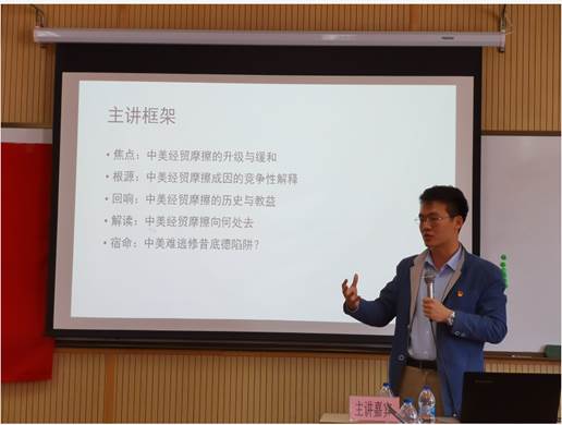 亦明员工围绕 “中美经贸关系”这一时政热点话题,向大家重点介绍了中美经贸摩擦的演变过程、具体成因、历史教益、未来去向等重要内容,形象生动地把自己对中美经贸摩擦何去何从的学术思考充分展现出来。宋亦明员工的精彩演讲拓宽了大家对中美经贸关系的认知视野,激发了大家的爱国主义情怀。