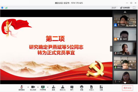 本次党支部大会是bv伟德国际1946官网本科生党支部在疫情限制下开展工作的一次重要创新,本次大会顺利地完成了毕业生预备党员的转正事宜,为党支部工作积累下宝贵的经验,同时也起到在疫情中鼓舞党员坚持奋斗信心的作用。