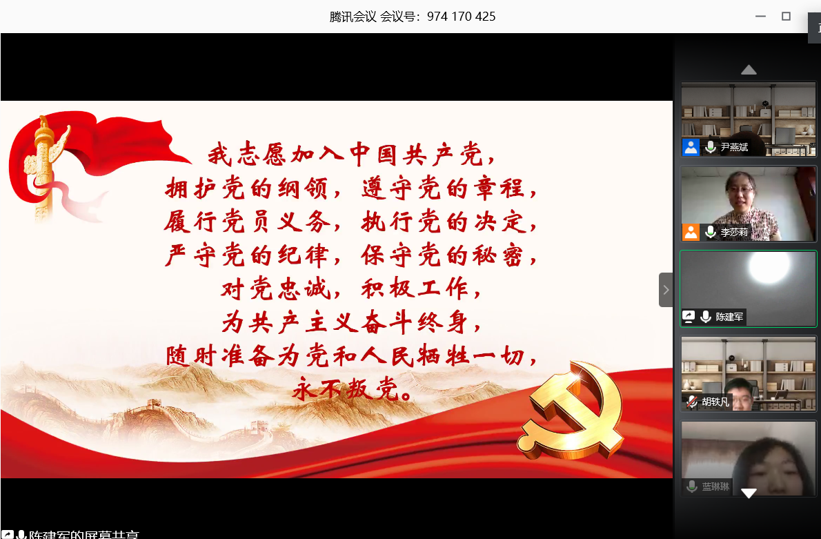 表决环节后,bv伟德国际1946官网党委组织员南琪老师对本次线上党支部会的准备及开展情况给出肯定评价,并对5位毕业生预备党员的发言做出点评。南琪老师在讲话中谈到,走出大学是关键的一步,对于党员而言,更重要的是在今后的生活工作中始终牢记初心,不断提高自身的素养并且为党和国家奉献,希望各位党员都能在奉献中实现人生理想。