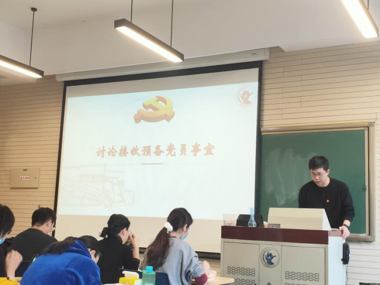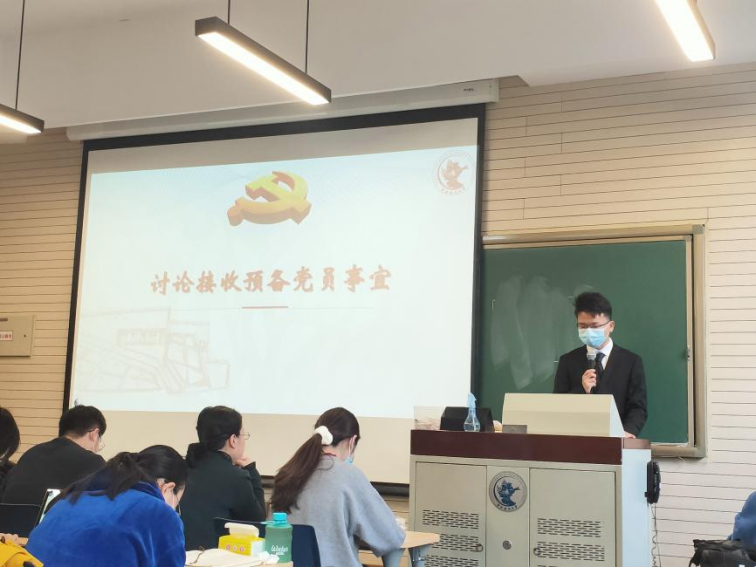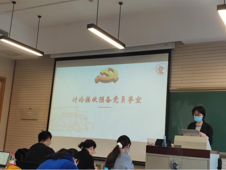 奏唱国歌后,会议开始了第二项议程,会议讨论了接收预备党员相关事宜,26位发展对象分别汇报对党的认识、入党动机、本人履历、家庭和主要社会关系情况,以及需要向党组织说明的问题等。经对候选人逐个进行入党介绍人汇报意见、党支委汇报政审情况、支部大会讨论等程序后,以大会无记名投票的方式表决,最终通过了接收王梦琦等26位同志为中共预备党员的决议。26位同志积极进行表态,并表示会不忘初心,继续努力,不断提升个人党性修养,争取早日成为一名正式的共产党员。