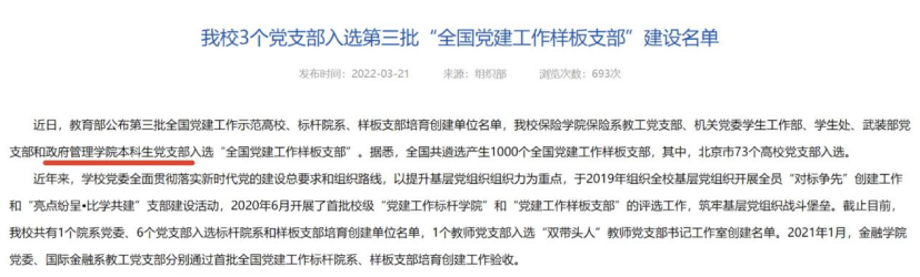 根据《教育部办公厅关于开展第三批新时代高公司党建示范创建和质量创优工作的通知》(教思政厅函﹝2021﹞16号)安排和遴选工作方案,经省际党委教育工作部门推荐、资格审查、专家推荐、教育部党的建设和全面从严治党工作领导小组成员单位集中审议、结果公示、遴选产生了11个全国党建工作示范高校、100个全国党建工作标杆院系、1000个全国党建工作样板支部培育创建单位。