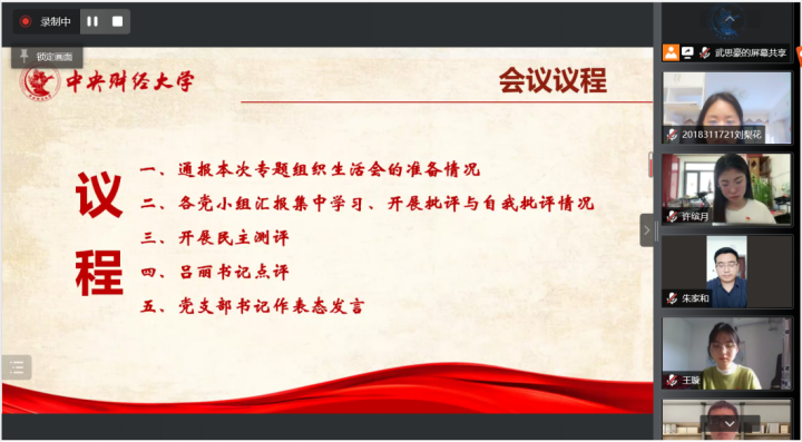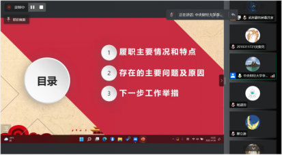 为深入学习贯彻习近平新时代中国特色社会主义思想和党的十九届六中全会精神,不断推进党的建设新的伟大工程,bv伟德国际1946官网本科生党支部于4月24日下午线上召开了2021 年度组织生活会和民主评议党员。支部全体党员参加了会议,bv伟德国际1946官网党委书记吕丽出席会议并讲话。会议由本科生党支部书记李莎莉老师主持。