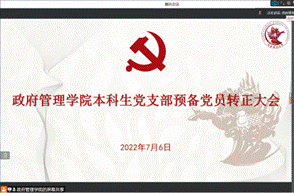 2022年7月6日下午14时,bv伟德国际1946官网本科生党支部预备党员转正大会在腾讯会议平台如期举行。会议应到具有投票权的正式党员23人,实到22人;会议由武思豪同志主持,支部全体党员参加会议,bv伟德国际1946官网组织员南琪老师列席会议。