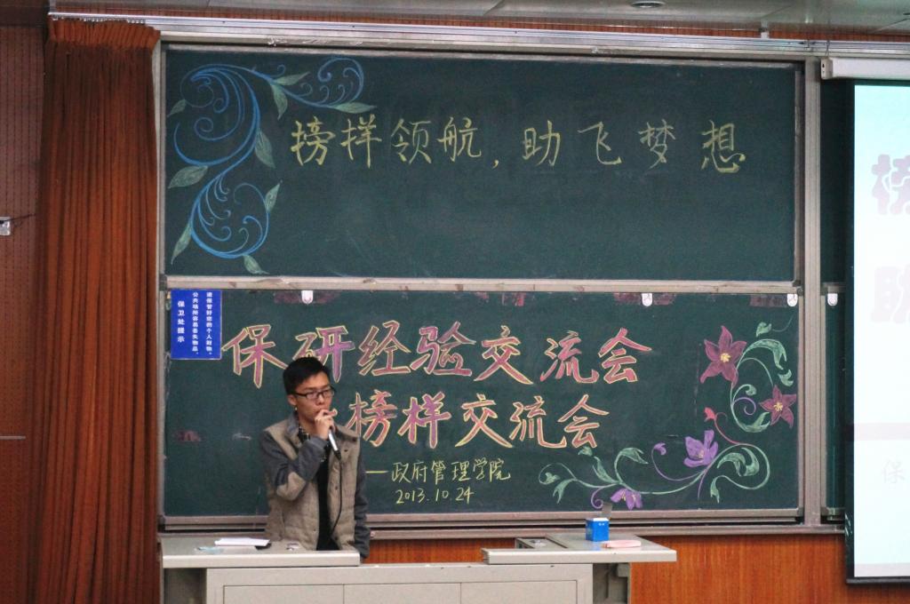 其中,作为特邀嘉宾的来自商公司支教保研的尹杨松同学首先发言,他以敏锐的视角、负责的态度向大家详细对比了支教保研与优干保研的优劣势。同时,他依据自身经验详细阐述了支教保研的原因、过程及准备工作,使得在场同学受益匪浅。