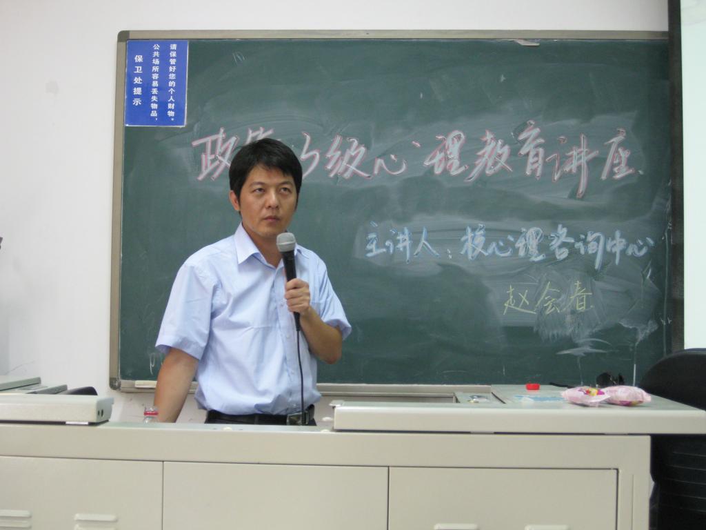 赵老师主要向大家介绍了心理健康知识、老员工心理素质的重要性及提高入学新生心理素质的方法。他从心理健康的意义、认识大学新生面临的各种变化、情绪管理、人际关系处理、应对挫折和困难等几方面给大家详细讲解了心理健康方面的知识,教大家如何更好地度过大学四年的时光。