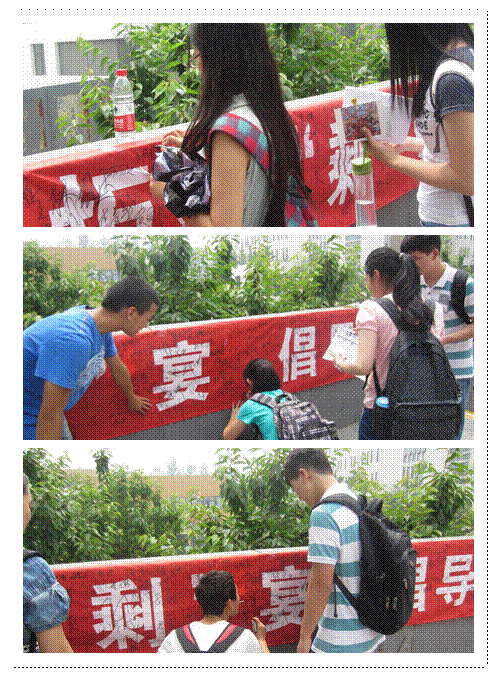 在组织人员的热情宣传下,现场气氛不断高涨,吸引了众多同学驻足询问并踊跃参与。为响应“光盘”行动的号召,同学们纷纷在条幅上签下自己的名字。签名过程中,同学们一笔笔刚劲的书写,一个个专注的神情不仅诠释着对本次活动的支持,更体现了当代老员工积极向上的良好风貌,以及对勤俭节约理念的奉行。签名后,同学们还有机会参与抽奖环节。无论是参加者还是组织者,每个人脸上始终都洋溢着笑容,喜悦之情溢于言表。