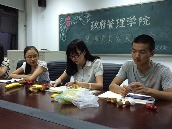 在自由陈述环节,同学们向老师袒露心声,总结了自己近一年来的进步与不足,又介绍了所在班级目前的发展状况。在对13级全体员工有了更深入的了解后,老师对在座党员提出了中肯的建议,其中着重强调了学习的重要性,也对班集体建设提出了指导性的建议,希望各位党员能发挥先锋模范和正确领导的作用。紧接着,赵粟同学就党建课题中问卷的发放、填写、回收等细节进行提问,任老师一一作出回答,王老师进行补充,同时,两位老师对课题下一步工作的开展提出了自己的想法。会议接近尾声时,王伟老师发放了有关“红色1+1”活动的相关资料,说明将在下一次会议时进行详细规划。
