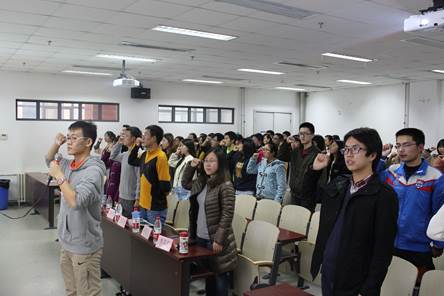 大会伊始,主持人李牧耘向大家简单介绍了基础团校及其主要任务。在激昂的国际歌中大会正式开始。