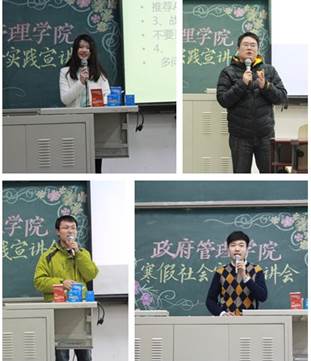 12月26日晚六点半,bv伟德国际1946官网2015年寒假社会实践宣讲会在bv伟德国际1946沙河校区主教214举行。bv伟德国际1946官网公共管理专业老师罗海元、团总支书记孙帮谦、团总支副书记冯梦迪、校实践学术部副部长王星皓、2014年暑假社会实践校级优秀个人黄灿灿出席本次活动。本次交流会由bv伟德国际1946官网学术实践部干事周新博主持。