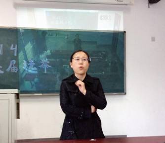 2015年10月9日13:30,国际政治14班班委换届选举在主教304教室举行。出席本次会议的有14级辅导员李莎莉老师和国政14班全体同学,前任班长崔琪同学主持本次会议。班级换届选的意义在于为每个同学都提供了展示自己的舞台,崔琪同学鼓励同学们积极参加本次换届选举。