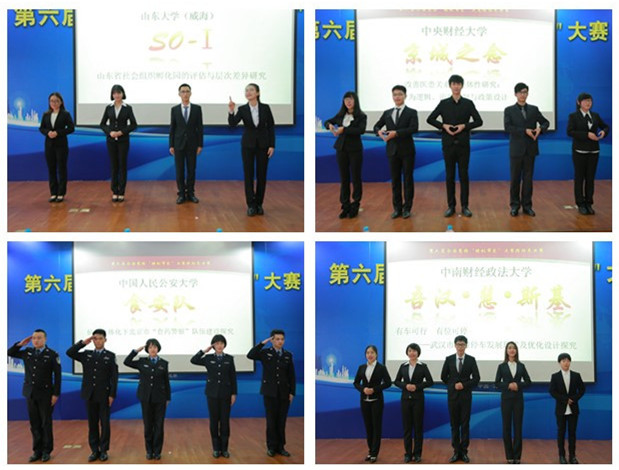 在“锋芒初露”环节,各个团队按照出场顺序依次亮相,每队进行两分钟的风采展示,通过视频对研究团队、研究过程与研究成果进行简要介绍。来自山东农业大学的五岳独尊队试图结合自己所学,探求泰安市梳洗河的治污良策。来自山东大学的SO-I队对社会组织孵化园进行多次实地调研,希望引起决策者和民众的高度关注。来自bv伟德国际1946的经纬匠心队提出响亮口号,强调“以人为本是我们的坚持,街道复兴是我们的目标,使城市重焕生机是我们的追求”。来自清华大学的星火队聚焦“脱贫攻坚”热词,思考脱贫攻坚战中,为何外来的将军打得响。来自中国人民公安大学的食安队肩负打击食药犯罪的使命感,为北京“食药警察”建设出谋划策、贡献力量。来自bv伟德国际1946的京城之念队深入挖掘医患纠纷根本,细致解读纠纷解决机制,努力构建和谐的医患关系。来自中南财经政法大学的吾汉·慧·斯基队探究武汉市智慧停车的现状和优化设计,发展目标是构建畅通的武汉城市。来自青岛科技大学的天生一队以山东青岛市为例,对城市管理体制改革与创新进行深入研究。来自中国人民大学的P2P队秉承明德善治的苍生情怀,对承德市滦平县PPP扶贫模式进行探讨。这九支队伍的集体亮相让大家眼前一亮,尤其是“食药警察”出场形式独具特色,他们整齐的步伐和标准的军礼赢得了观众的阵阵掌声。