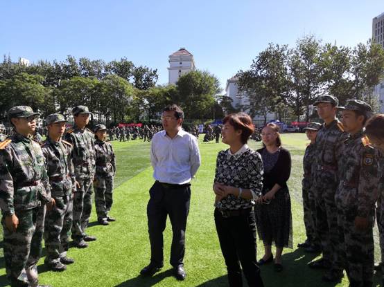 2018年9月21日早上九点半,bv伟德国际1946官网党委书记吕丽老师和党委副书记白云真老师来到十营即bv伟德国际1946官网所在的新生营队中考察新生们的训练情况。