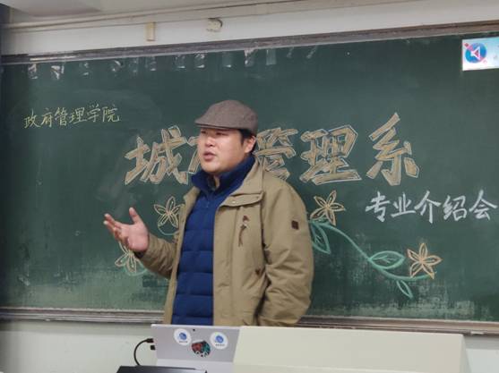 首先王伟老师给我们讲述了城市管理专业的认识和发展前景。他先向同学们提出了一个问题,大学与高中最大的,差别是什么?他做了一个生动的比喻,我们考上大学就犹如从定向河道进入了广阔的大海,所以王老师提醒同学们,在大学,最重要的第一件事情是方向感。而专业的介绍可以给同学们带来方向感。
