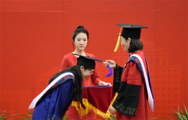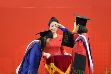 典礼第六项,杨柳副书记宣读学士学位授予名单,李宇环副经理宣读硕士和博士学位授予名单、往届毕业生返校名单,姜玲经理为毕业生拨穗,颁发学位证书。拨正流苏,感恩教诲,从此天高海阔,前程锦绣。
