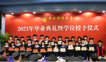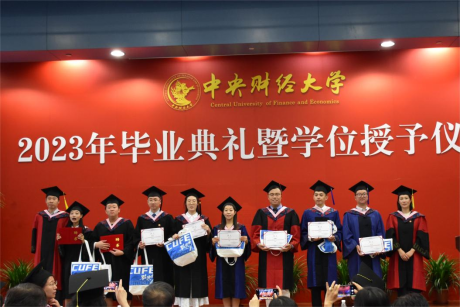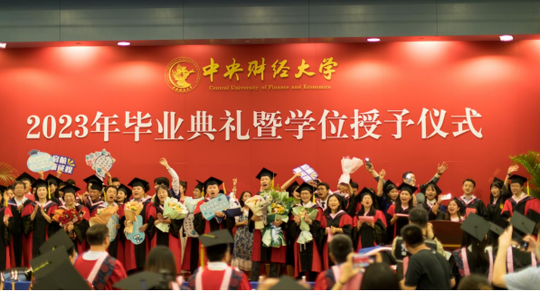 典礼第七项,2023年新员工接收仪式,姜玲经理向员工年级理事颁发聘书,于鹏书记赠送礼包。自此,2023届毕业生们从中财大政管毕业,正式加入中财员工大家庭,无论未来飞得多远,中财大政管永远是同学们温暖的家。